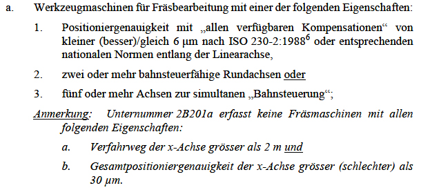 Entscheidend ist dabei: Ob ein Gut erfasst ist, bestimmt sich ausschliesslich danach, ob die konkret vorliegenden technischen Eigenschaften eines Produkts die in den jeweiligen Listeneinträgen definierten Kriterien erfüllen. Dies umfasst insbesondere quantitative Schwellenwerte (z.B. Genauigkeit, Leistung, Dimensionen), qualitative Konstruktionsmerkmale („besonders konstruiert oder hergerichtet“) sowie funktionale Eigenschaften.